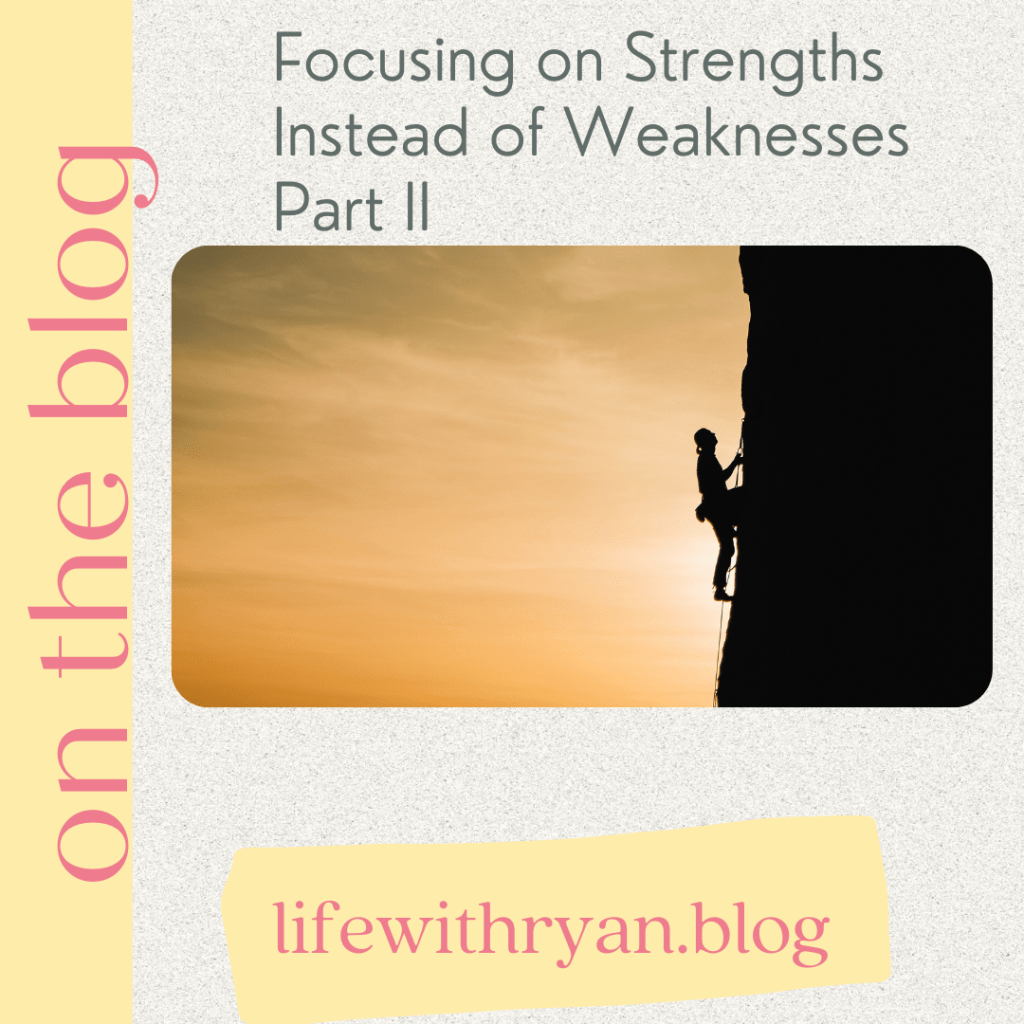 Ryan is still learning about his strengths. It’s a lifetime process and adventure. It’s going to take a lot of experimenting, tweaking and even fun. But without using those strengths, then everything is just darkness and shame. Don’t we all want to find out what our strengths are so we can succeed to the best of our abilities?